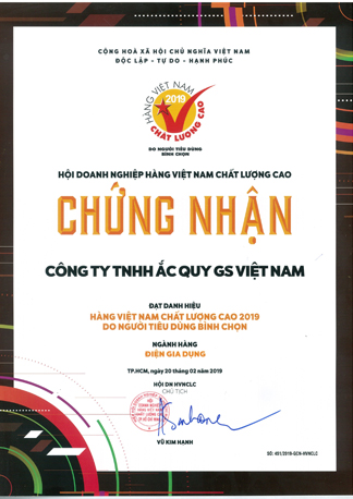 Ngày 01/11/2016, sản phẩm ắc quy xe gắn máy của Công ty TNHH Ắc quy GS Việt Nam chính thức được Tổng cục môi trường chứng nhận nhãn sinh thái theo chứng nhận số 1634/QĐ-TCMT-2016