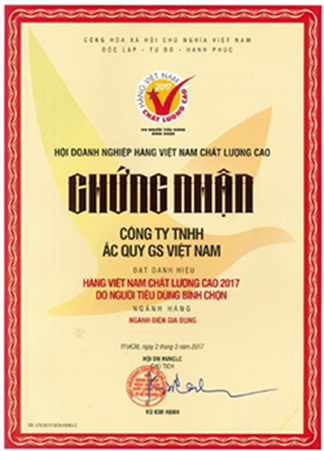 Ngày 08/04/2015, GSV đã được cấp chứng chỉ công nhận ISO/IEC 17025:2005 (Vilas 832) cho “Trung Tâm Thử Nghiệm Tính Năng - Ắc quy GS Việt Nam”