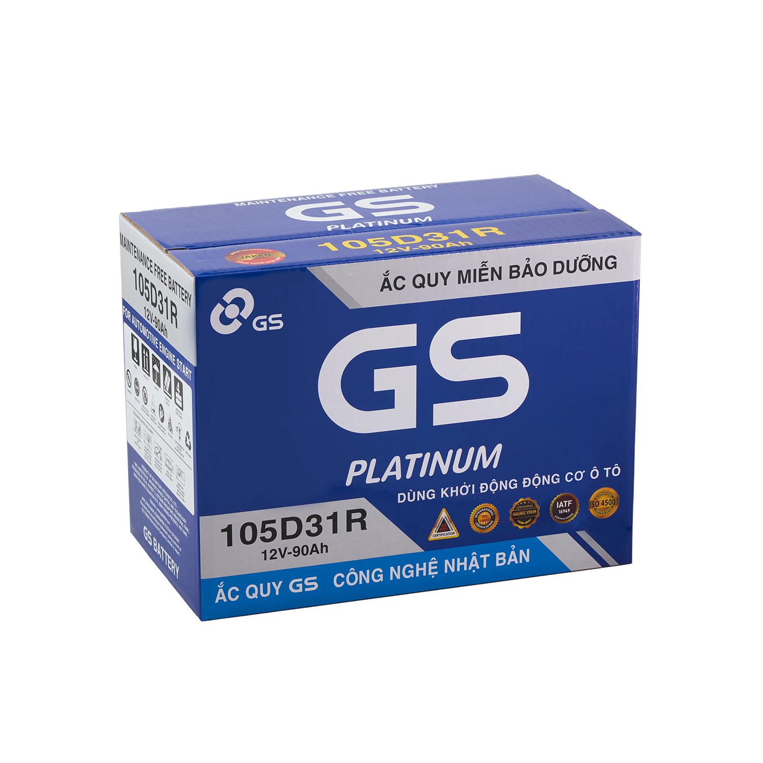 Ắc quy ô tô GS Việt Nam ứng dụng công nghệ Nhật Bản, cho khả năng khởi động mạnh mẽ, điện áp ổn định, độ bền cao, tuổi thọ dài, phù hợp nhiều dòng xe và điều kiện vận hành tại Việt Nam.Cam kết Ắc quy GS Việt Nam