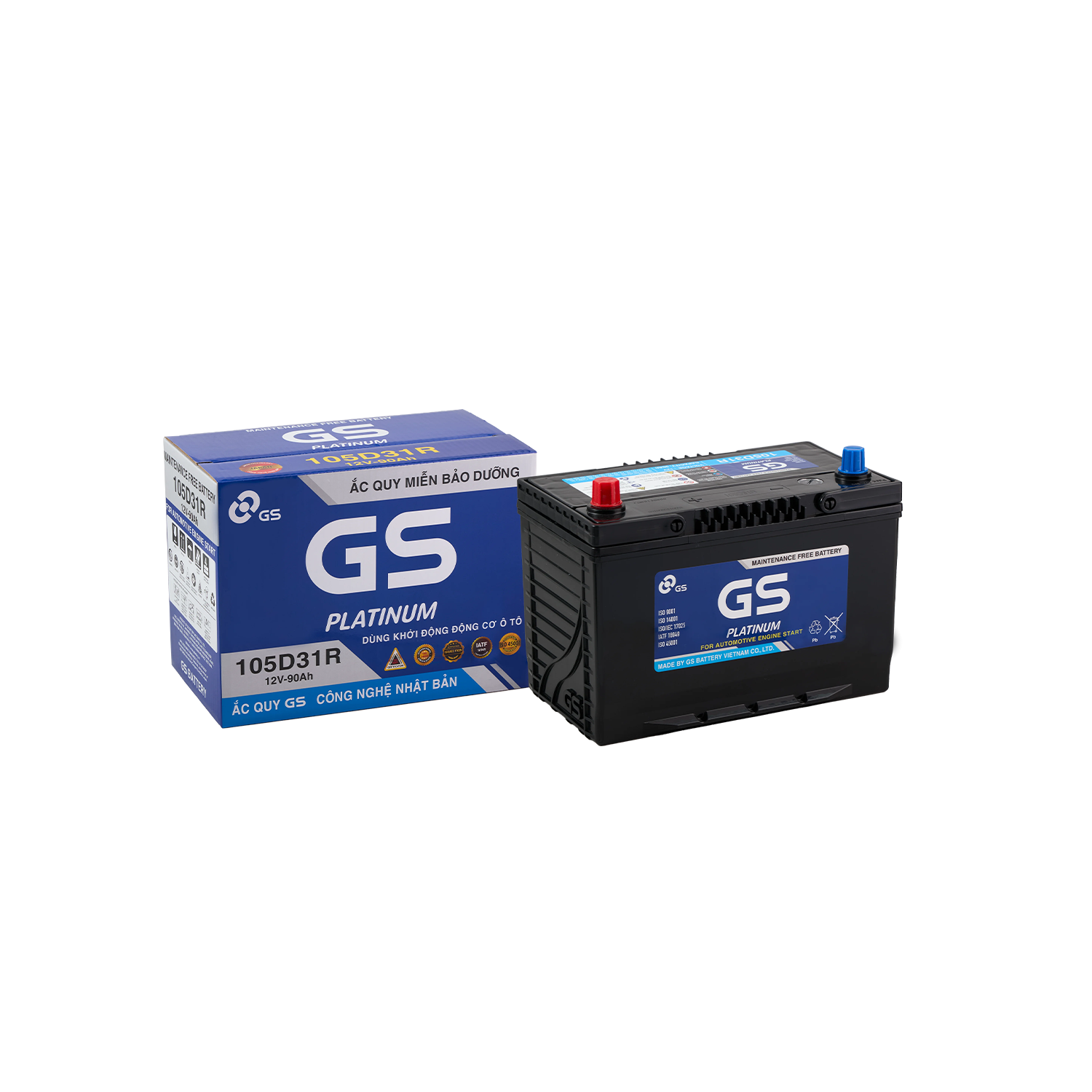 Ắc quy ô tô GS Việt Nam ứng dụng công nghệ Nhật Bản, cho khả năng khởi động mạnh mẽ, điện áp ổn định, độ bền cao, tuổi thọ dài, phù hợp nhiều dòng xe và điều kiện vận hành tại Việt Nam.Cam kết Ắc quy GS Việt Nam