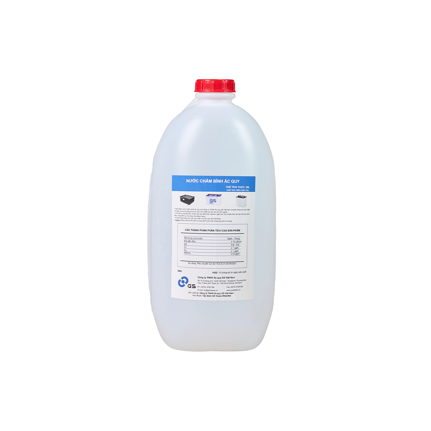 Chúng tôi là nhà sản xuất Nhật Bản cho nên mỗi sản phẩm chúng tôi làm ra đều phải dựa theo tiêu chuẩn công nghiệp Nhật Bản, như là một sự cam kết về chất lượng sản phẩm của chúng tôi. Đây là một cơ hội để chúng tôi có thể chứng tỏ với khách hàng của mình về sự khác biệt giữa sản phẩm nước châm bình ắc quy GS và sản phẩm của các nhà cung cấp khác. Nước châm bình ắc quy của chúng tôi không chỉ phù hợp cho các sản phẩm ắc quy của GS mà còn cho các nhãn hiệu khác.
